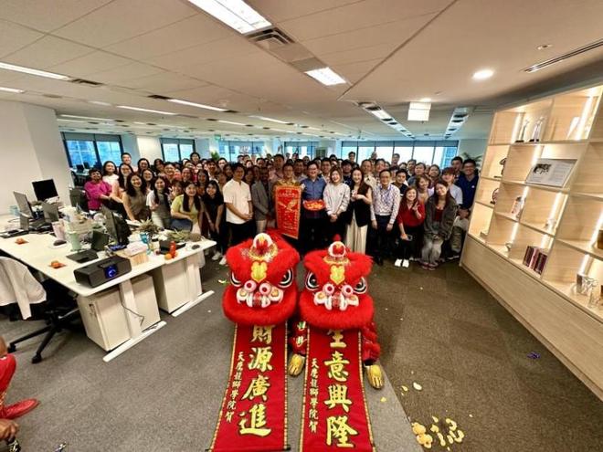 在乔迁开幕当天,BIPO CEO Michael Chen 与来自BIPO全球多个国家与地区的团队代表齐聚新加坡,共同见证重要时刻。活动以热闹的舞狮开场,寓意事业蒸腾旺盛,以象征好运的“旺来”仪式为新办公室开启新的发展周期。Family Day 将员工与家属共聚一堂,以多元文化美食、传统甜点、冰淇淋和儿童特调饮品增添温度,使庆典不仅是企业发展的仪式,更是一场展现BIPO文化内核的聚会。