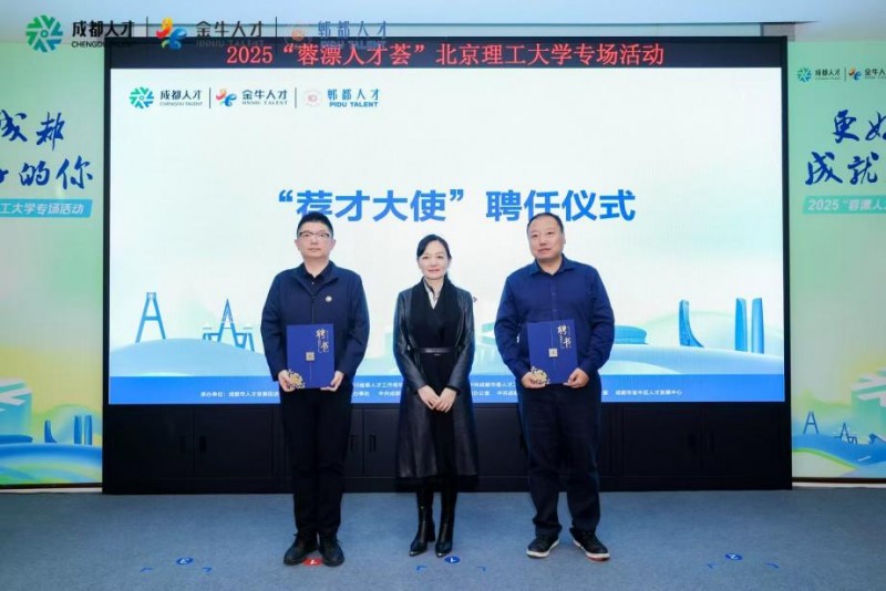 为拓宽引才渠道,实现人才与城市的精准对接,活动现场举行了“荐才大使”聘任仪式。北京理工大学两位“荐才大使”将积极推介成都,连接更多优秀学子与成都发展机遇,推动人才与城市的“双向奔赴”。此外,北京理工大学、金牛区、郫都区共同签署“校地人才合作协议”,未来三方将在人才引进、实习实践基地建设等领域开展深度合作。