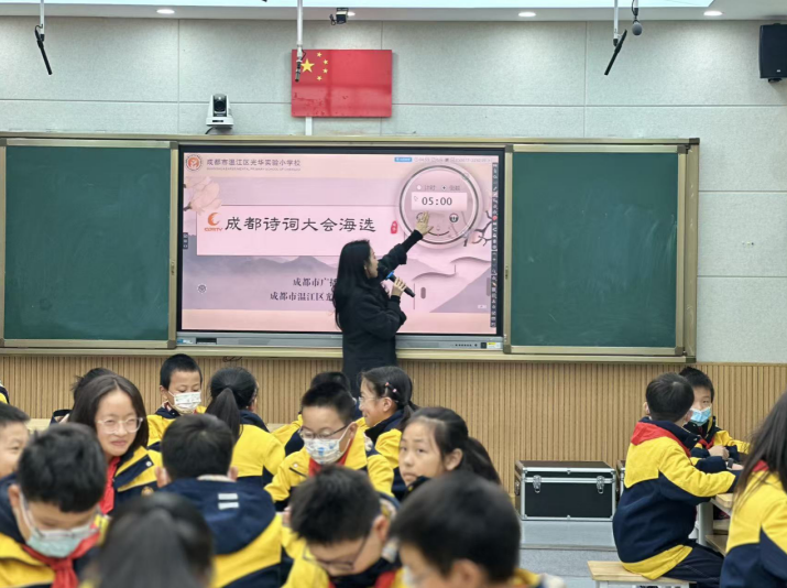 近日,从成都市广播电视台《诗成都诗词大会》组委会传来喜讯,在备受瞩目的平板作答海选环节中,温江区光华实验小学的学子们表现卓越,成绩斐然,以丰厚的诗词积淀和沉稳的现场发挥,在全市众多参赛者中脱颖而出,充分展现了光华学子“颗颗饱满、迈向光芒”的卓越风采。