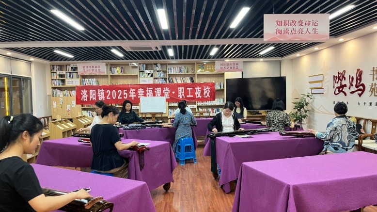 七年深耕不辍,助力镇域发展。近七年来,武进区洛阳镇“幸福课堂・职工夜校”累计开设课程近100期,惠及职工超3000人次。从职场新人到资深从业者,从技能提升到兴趣培养,夜校为不同需求的职工搭建了成长平台。在这里,有人通过AI办公课程提升了工作效率,有人在古琴课堂收获了文化滋养,有人借助运动课程改善了身体状态。