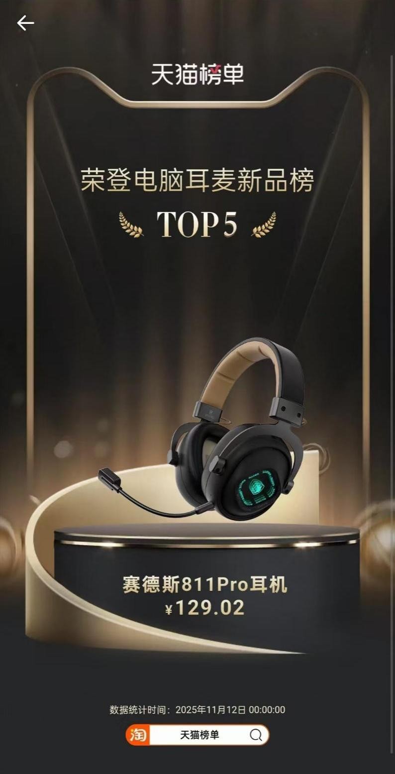 能够在竞争异常激烈的双十一大促中,于天猫平台多个权威榜单同时登顶前十,不仅是对产品本身过硬品质与出色性价比的有力印证,更是赛德斯品牌历经市场沉淀后,精准把握用户需求、成功焕发新活力的生动体现。赛德斯811Pro耳机以其出色的音频表现、专为电竞优化的设计以及亲民的价格定位,成功俘获了广大游戏玩家和用户的青睐。