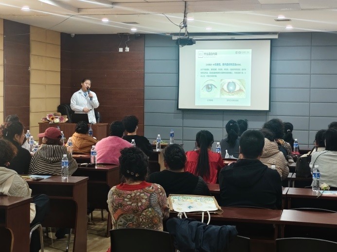 活动伊始,眼科专家以"老年人常见眼病的预防与治疗"为主题,用通俗易懂的语言讲解了青光眼、白内障等眼部疾病的发病机制、早期症状及预防措施。专家特别强调,青光眼是老年人致盲的主要原因之一,早期筛查和干预至关重要。通过PPT展示,专家对比了健康眼底与病变眼底的图像差异,直观地让客户认识到眼部健康的重要性。