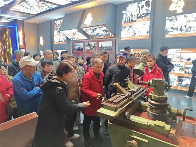 走进文化街区,复古的厂房建筑、斑驳的机器设备、充满年代感的标语海报,瞬间将老人们带回衡阳工业蓬勃发展的峥嵘岁月。不少亲历过工业建设时期的老人,看到熟悉场景纷纷驻足,追忆当年挥洒汗水、奉献青春的过往,相互分享亲身经历的工业故事,现场氛围温馨而热烈。