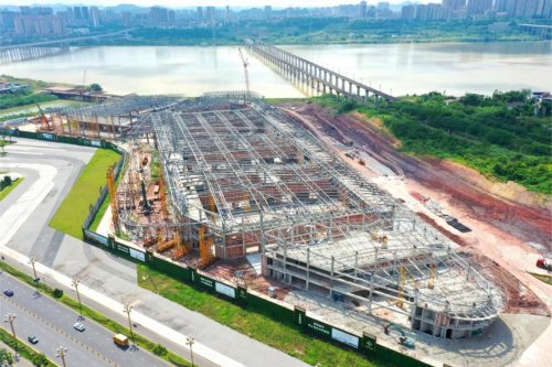 南充国际会展中心6000吨钢结构完成吊装(徐嘉琪摄)