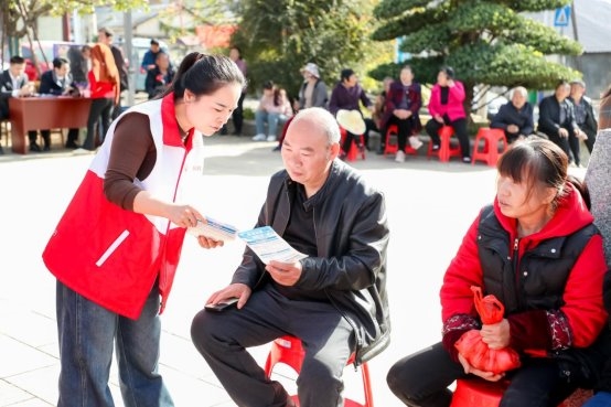 活动开始,长沙市医疗保障事务中心副主任杨斌同志在致辞中深刻阐述了医保作为国家“健康盾牌”的重要性,并指出推动参保是防止群众因病致贫返贫的关键举措。活动现场由柏加镇社工站协助柏铃村创新设置了“三大服务区”:政策咨询区就职工医保、居民医保、大病保险、特殊门诊等焦点问题提供面对面解答;便捷缴费区工作人员手把手协助村民通过手机完成线上参保,实现“一键缴费”;健康服务区则为村民提供免费的血压、血糖测量及常见病咨询。这种“零距离”的贴心服务,让政策宣传不再是冰冷的通知,而是充满了温度的关怀。