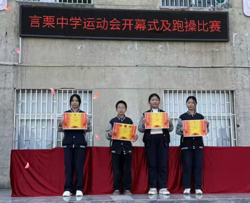 经过一个半小时的激烈角逐,裁判组现场汇总分数并公布获奖名单。最终,2个班级斩获一等奖,3个班级荣获二等奖,4个班级获评三等奖。校领导为获奖班级颁发了荣誉奖状及篮球、排球、羽毛球拍等体育器材,并为一等奖班级的“最佳领操员”及班主任分别颁发了个人荣誉证书与优秀组织奖。