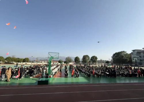 初冬暖阳洒校园,少年意气展锋芒。11月27日下午,湖南省新邵县小塘镇言栗中学田径场与篮球场上旌旗招展、口号铿锵,该校初一至初三全体班级齐聚一堂,一场以“活力、整齐、向上”为主题的跑操比赛在此热烈举行,用整齐的步伐与昂扬的姿态勾勒出校园最美的青春画卷。