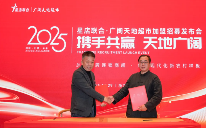 实地考察带来的直观信心,在现场立刻转化为合作的实际行动。随后,星店联合·广阔天地超市与来自山东淄博张店区的知名经销商赵子明赵总正式签署加盟,将发布会推向了高潮。此次签约不仅标志着项目在全国市场布局上取得关键突破,更以实实在在的案例,向所有意向加盟者证明了该模式对行业资深人士的强大吸引力,为加盟招商活动写下了最有力的注脚。
