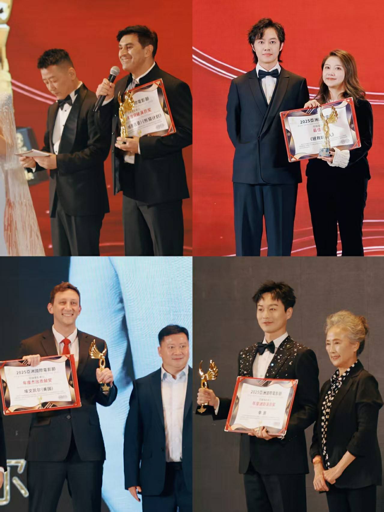 盛典由知名演员胡明担任嘉宾主持与新生代知名主持人张未联袂执掌话筒,二人以沉稳大气的台风、灵活自如的控场能力和默契十足的互动配合,串联起整场活动的每一个精彩瞬间,为盛典注入灵动、鲜活、幽默的氛围。红毯之上,星光熠熠:唐国强、许文广、潘斌龙、侯天来、冯雷、黄小蕾、蒋璐霞、钱漪、吴昱翰、洪浚嘉、黄允桐、林秋楠、曹阳、高强、巫刚、辛鹏等德艺双馨的表演艺术家与实力派和新生代演员踏光而来,以作品为证诠释演员的初心与担当;华表奖导演张栾、高票房导演田羽生与新锐导演夏雨、刘滕、朱凌锋、朱秋玥、娄辰等与资深影人齐聚,携多元题材佳作展现光影创作的无限可能;更有埃文·凯尔(美国)、马铁摩(格鲁吉亚)、Pascale BON(法国)等国际友人倾情亮相,以跨越国界的赤诚为中外文化交融添上浓墨重彩的一笔。从成家班新一代动作导演“三剑客”到崭露头角的青年演员林秋楠,从深耕幕后的金牌编剧、制片人到跨界突破的全能创作人,各领域影视从业者齐聚一堂,勾勒出亚洲电影人薪火相传、锐意创新的鲜活群像。