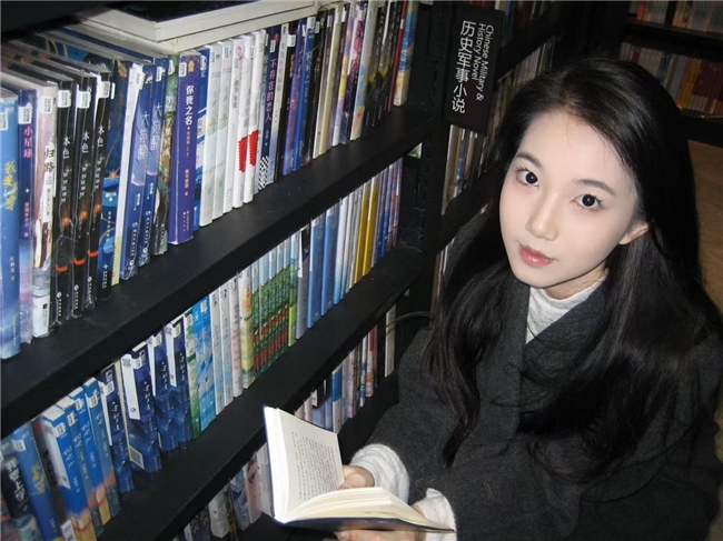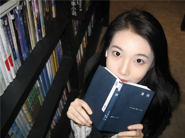镜头里的她长发垂肩,黑色大衣衬得皮肤愈发白皙,或坐在书架旁抬眸浅笑,或手持书籍半掩脸颊,身后满架的文学作品与她身上的安静气质融为一体,像从文艺电影里走出来的女主角。尤其她手持《常识》一书的画面,书页的墨色与她的穿搭色调形成低饱和碰撞,既带着书卷气的松弛,又藏着演员自带的镜头氛围感,连书脊的细节都成了“颜值加成项”。