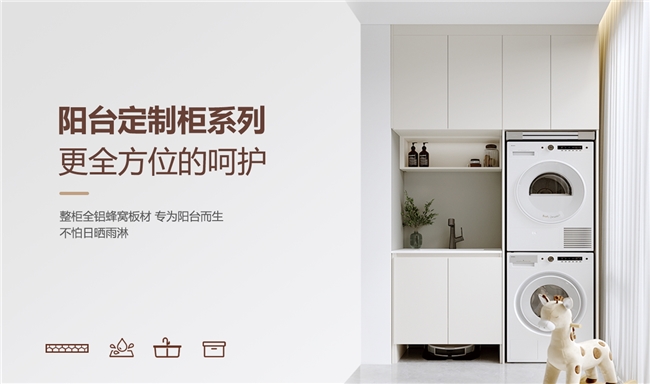 阳台铝柜采用全铝打造,遇火不助燃,同时具备防潮防蛀特性,解决了阳台这一特殊空间的安全收纳难题;