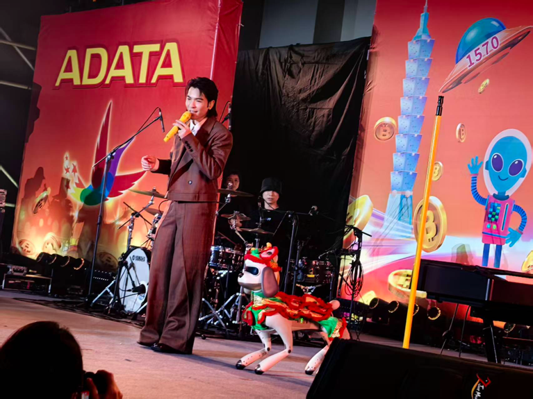 近日,由巨星传奇与宇树科技战略合作打造的四足机器人“巨星狗”于全球存储巨头威刚科技(ADATA)年会亮相。在年会现场,该产品以明星IP、潮流元素与科技感外形的融合形态获得来宾关注,成为现场亮点之一。艺人萧敬腾与“巨星狗”现场互动,为年会增添更多趣味性,展示了“IP+机器人+AI”在演出场景中的创新应用。