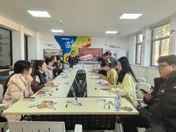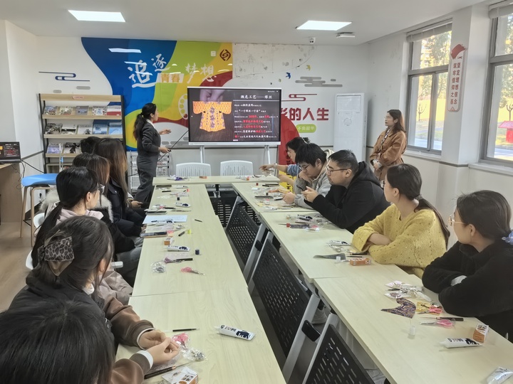 实践环节将活动推向高潮。在温馨融洽的氛围中,来自土家族、苗族、达斡尔族、回族等6个少数民族的学子齐聚一堂,沉浸于缂丝艺术的创作体验。活动现场,缂丝材料琳琅满目,参与者们在社团骨干的悉心指导下,精心创作发夹、挂坠、胸针等精致物件。4名社团成员游走其间,倾囊相授操作技巧,及时答疑解惑。整个过程中,同学们创意迸发,从配色、设计到固定,沉浸于指尖上的艺术创造,将传统技艺与现代审美巧妙融合,在经纬交织间完成了一件件独具个人风格的匠心之作,喜悦与成就感洋溢在每个参与者的笑脸上。“这次活动不仅让我第一次亲密接触并体验了缂丝,感受到了非遗的无穷魅力,更在合作交流中结识了其他民族的同学,加深了彼此的了解与友谊。”来自苗族的陈天明说道。