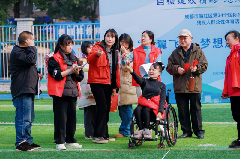 12月1日下午,成都市温江区特殊教育学校内彩旗飘扬、暖意融融,由成都市温江区残疾人联合会主办、成都市温江区教育局、共青团成都市温江区委员会、成都市温江区涌泉街道办事处、成都市温江区特殊教育学校协办的第34个国际残疾人日残疾人群众性体育活动决赛顺利举行。来自全区各镇(街道)的230余名参赛人员、裁判员、志愿者及工作人员齐聚赛场,在竞技与趣味兼具的赛事中展现残疾人昂扬向上的精神风貌,传递自强不息的生命力量。