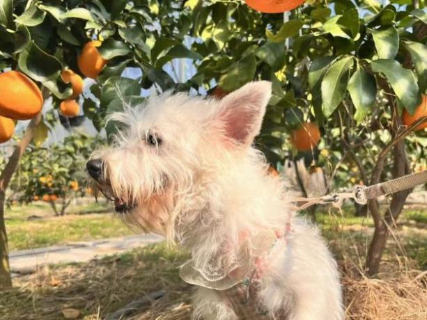 本次嘉年华的一大亮点,是特别设置的“红美人”柑橘采摘环节。主人们牵着爱犬,一同走进橘香四溢的果园。金黄的“红美人”挂满枝头,狗狗们兴奋地在田埂间穿梭,主人们则弯腰采摘,体验着丰收的乐趣。