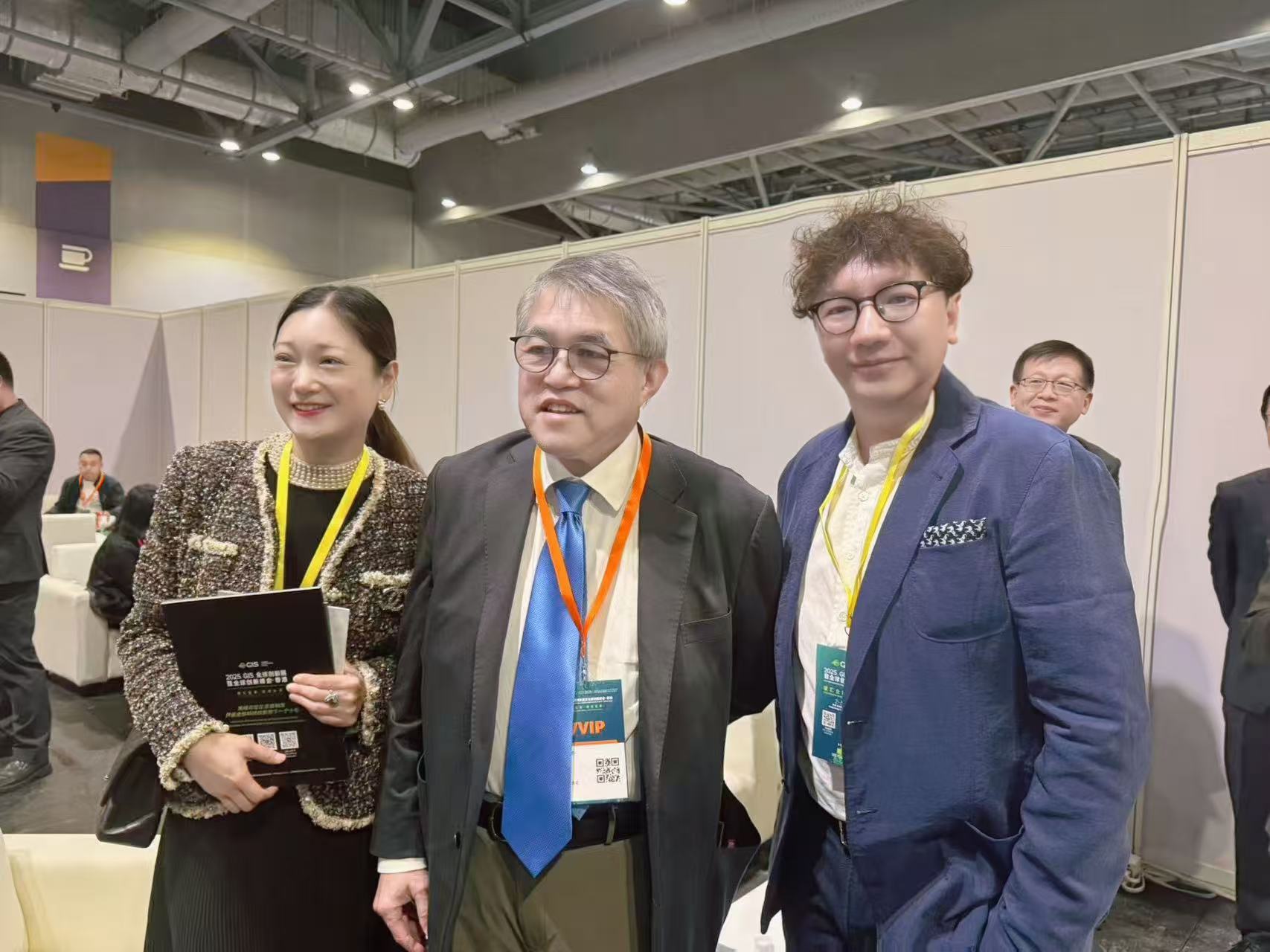 在大会现场,董恒江会长作为VIP嘉宾,与本届峰会主席、霍英东基金会董事霍震宇先生亲切交流并合影留念。霍震宇先生长期致力于粤港澳大湾区创新发展与城市建设,是本届GIS峰会的核心发起与组织者之一,推动产业创新和国际合作。