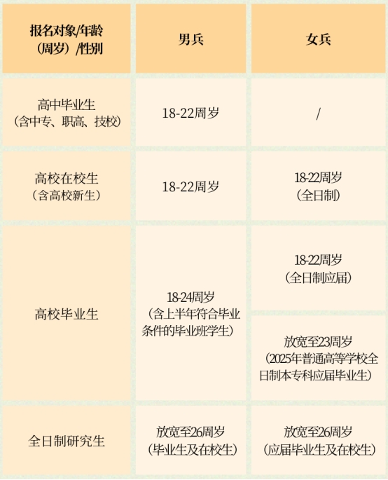 兵役登记:年满18周岁男性公民须登录全国征兵网完成登记,往年未登记者需补登。