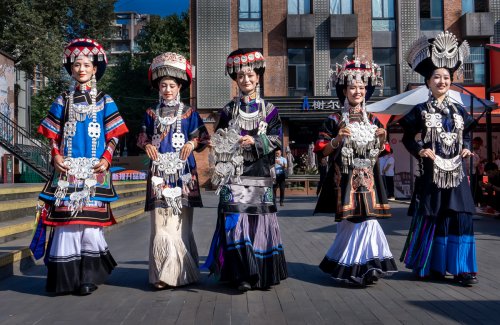 这些非遗项目并非束之高阁的博物馆标本,而是融入日常生活的活态文化。在金阳县城的彝族服饰店里,22岁的店主王芳向记者展示沙玛服饰的独特魅力:“在做工上,沙玛服饰保留了挑、绣、镶、滚等传统手工技法,做工相对简便;款式上,主打宽松版大花纹,年轻女子的百褶裙最有代表性,显得大气飘逸;颜色上,用黑、白、深蓝等深色做底,搭配红、黄等鲜艳纹饰,对比强烈,既庄重又艳丽,辨识度很高。”