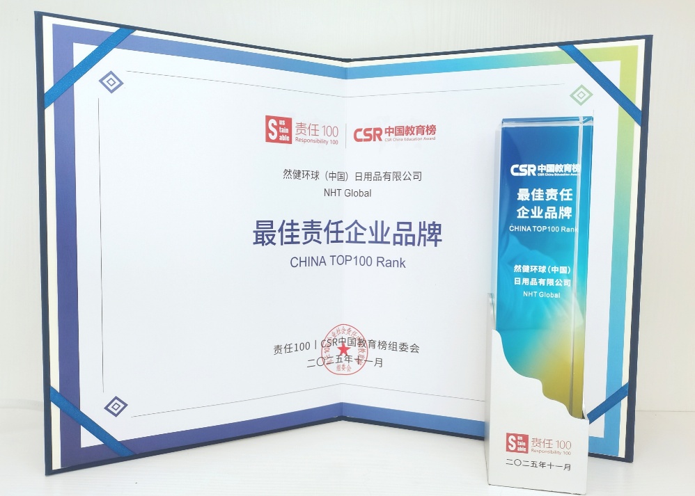 近日,“责任100|2025年第九届CSR中国教育榜”正式揭晓,然健环球(中国)日用品有限公司凭借多年来在教育公益实践领域的持续深耕与卓越贡献,被授予“最佳责任企业品牌”奖项。