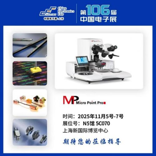 2025年11月7日,上海——以“创新强基,智造升级”为主题的第106届中国电子展近日圆满落幕。本届展会吸引了超3万人次专业观众及600余家产业链企业参与,集中展示了从基础电子元件到高端装备制造的全链路创新成果。全球领先精密半导体设备企业Micro Point Pro Ltd.(MPP)携高精度引线键合与检测全链路解决方案亮相,通过实机演示与前沿技术解读,成为展会中备受关注的技术标杆。