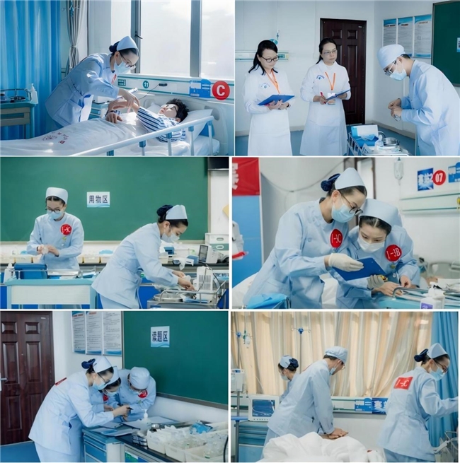 竞赛采用“站点式”与“赛道式”双重考核模式,覆盖内科、外科、急救护理等领域,全面考查学生的操作技能、应急能力、人文素养及团队协作精神。赛事全程实时直播,成为全省护理教育交流的高水平平台。赛场上,来自南华大学的选手们沉着冷静、操作规范,面对复杂临床案例精准研判、高效决策,展现出扎实的临床思维与人文关怀,赢得评委高度评价。