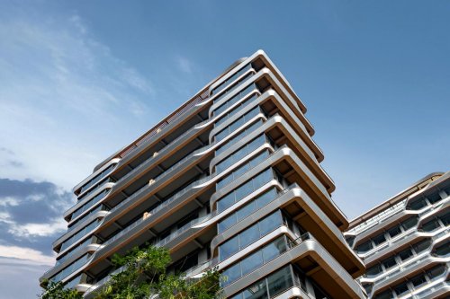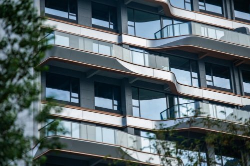 在西派天悦,建筑外立面不仅注重视觉表达,更讲求工艺与功能的统一。项目采用曲线铝板与金属幕墙相结合的超流体立面系统,以简洁灵动的线条重塑建筑轮廓,与周边环境和谐共生。