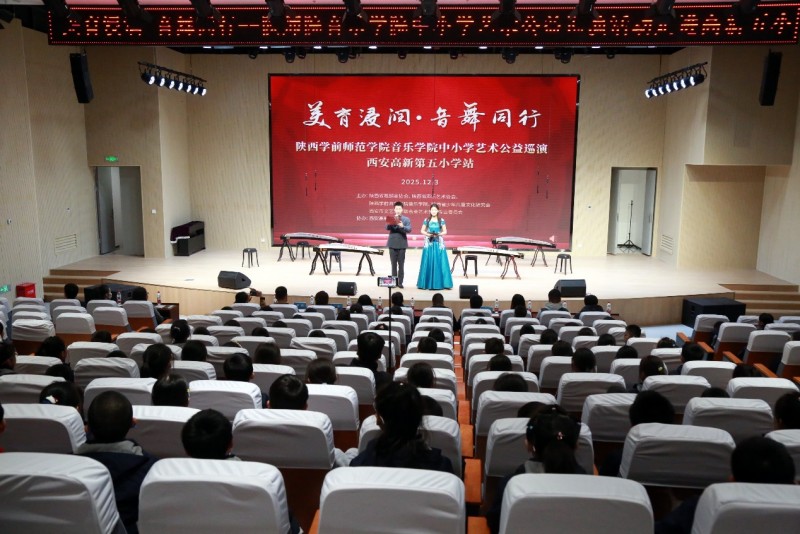 为深入贯彻落实国家美育浸润行动计划,以高雅艺术滋养少年儿童心灵,2025年12月3日下午,由陕西省舞蹈家协会、陕西省声乐艺术协会、陕西学前师范学院音乐学院、陕西省少年儿童文化研究会、西安市文艺两新联合会艺术教育专业委员会联合主办的中小学艺术公益巡演活动在西安高新区第五小学隆重举行。陕西省舞蹈家协会主席刘姬娜、陕西省少年儿童文化研究会会长卞正华、陕西学前师范学院音乐学院院长葛晓妮及西安高新第五小学校长付京华等领导嘉宾出席活动,与全校师生共同见证了一场高水平的艺术盛宴。