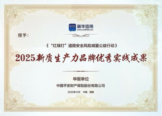 在近日举办的“2025企业家博鳌论坛”期间,“2025品牌信用建设论坛”同期举行。论坛以“信用赋能品牌‘新三化’”为主题,旨在推动信用体系与现代化产业体系建设深度融合。会上,一批具有行业代表性的实践案例获评为“2025新质生产力品牌优秀实践成果”,涵盖金融、文旅、生态等多领域。平安产险“红绿灯”道路安全风险减量公益行动作为金融领域案例入选。