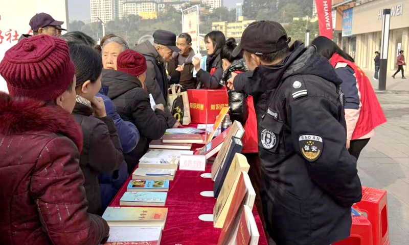 展区内,百余册承载华蓥记忆的地方文献整齐陈列。泛黄的老照片册、详实的《华蓥民俗志》、珍贵的文史档案等实物资料,串联起城市发展的岁月轨迹。活动吸引约1500名市民驻足品鉴:头戴格子贝雷帽的老者轻抚老照片,在光影流转中探寻家乡旧貌;结伴而来的市民围读民俗典籍,低声追溯儿时听闻的民间传说;工作人员耐心为坐轮椅的老人讲解文献背后的故事,让文化的温度穿透时空阻隔。