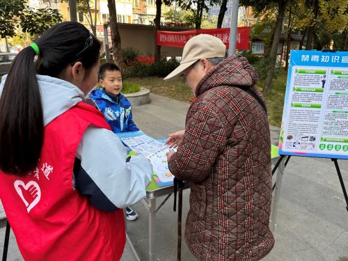 活动现场设置五大核心宣传体验区域,邀请青少年志愿者作为宣传员,为居民带来多方位的宣传。消防安全区,通过志愿者讲解以及消防安全隐患找一找游戏,向居民普及火灾预防及应急避险知识;交通安全区以交通安全飞行棋游戏为载体,帮助大家牢记交通规则和交通标识,树立文明出行意识;禁 毒宣传区志愿者通过案例讲解和趣味识毒游戏揭露毒 品危害,引导居民筑牢禁 毒思想防线;垃圾分类区结合互动实操,讲解分类标准与投放技巧,培养居民环保生活习惯;家风家训区则通过优秀家风故事分享,传递优良家风内涵,助力现场青少年的品德养成。