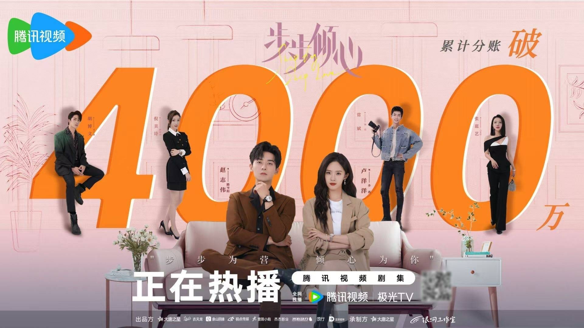 2022年的网剧市场,分账剧尚未形成主流赛道,其“以播放量换收益”的模式意味着作品质量直接与商业回报挂钩,观众的每一次点击、每一笔付费都是最真实的市场反馈。在多数投资者持观望态度时,侯玥同已然凭借《步步倾心》崭露头角,这部登陆腾讯视频的作品最终斩获站内分账破4000万的亮眼成绩,成为当年分账剧市场的现象级黑马。这一成功并非偶然,而是源于侯玥同对市场需求的深刻洞察,和“先懂用户再做内容”的精准打法。《步步倾心》的脱颖而出,让侯玥同为后续资源积累与多平台合作奠定了基础。