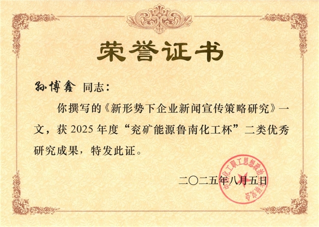 会议对“兖矿能源鲁南化工杯”优秀研究成果进行发布表彰。据悉,本次发布活动共收到研究成果372篇,经专家综合评审,发布一类研究成果42篇,二类研究成果71篇,三类研究成果129篇,中国化学二化建职工孙博鑫撰写的论文《新形势下企业新闻宣传策略研究》脱颖而出,荣获“兖矿能源鲁南化工杯”二类优秀研究成果,麻海霞、高雅珍荣获“优秀通联工作者”。