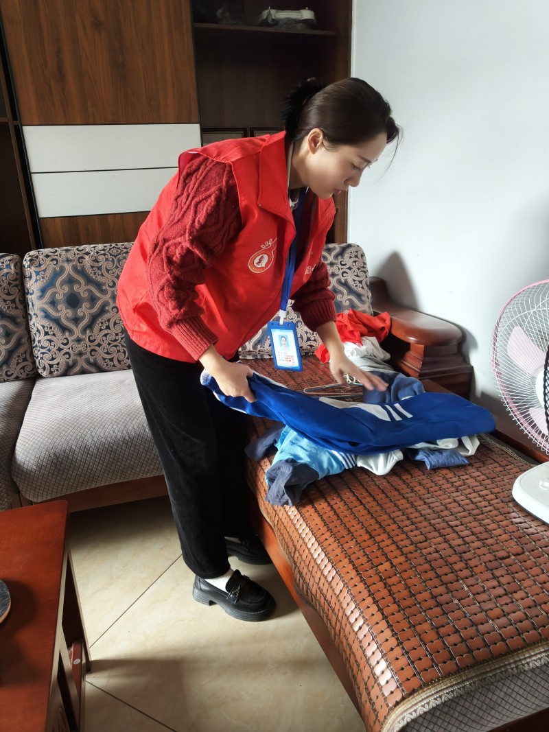 上门过程中,杨艳发现孩子的卧室衣物杂乱、厨房泡面碗未洗已发霉,便立刻和管家一起帮忙打扫卫生,整理衣物、清洗餐具、清理垃圾,孩子也懂事地跟着一起忙活。杨艳还反复叮嘱孩子:“垃圾要装袋提下楼扔到垃圾桶,千万不能从窗户抛出去。”孩子笑着点头答应。