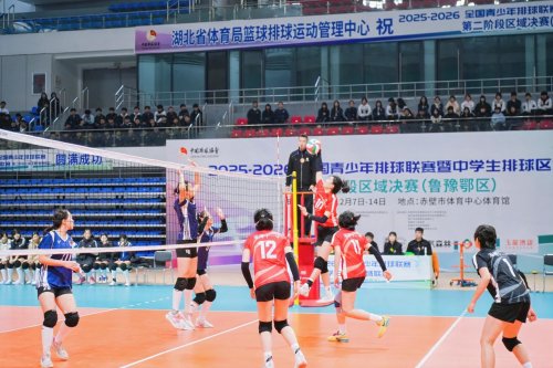 (何格)12月9日,2025-2026全国青少年排球联赛暨中学生排球区域联赛第二阶段区域决赛(鲁豫鄂区)在湖北赤壁市体育中心正式拉开战幕。来自山东、河南、湖北三省的16支青少年男女排球队齐聚于此,将在为期五天的激烈角逐中,为争夺通往全国总决赛的珍贵席位而奋勇拼搏。