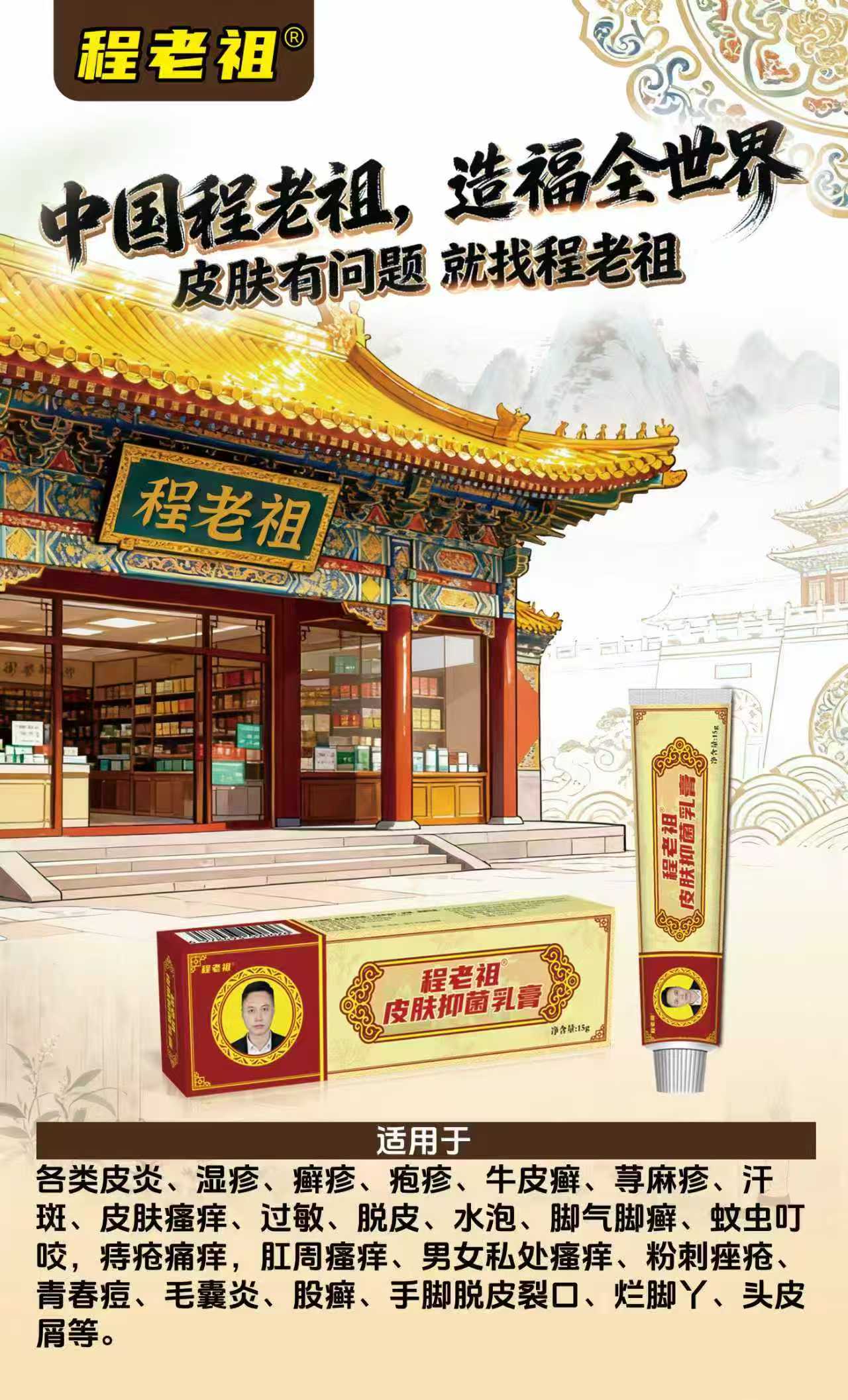 历经数十年的钻研与实践,程中祥将古老秘方与现代工艺相结合,摒弃传统制剂的粗糙弊端,通过多次提取、精准炮制,将纯天然中草药原料转化为更易吸收、便捷使用的乳膏形态,并正式命名为“程老祖乳膏”。这款凝聚着百年智慧的产品,以舒缓肌肤、消除瘙痒的显著功效,迅速赢得患者信赖,口碑相传间,成为治疗皮肤病的著名方剂,让“治病救人”的祖训在新时代落地生根。