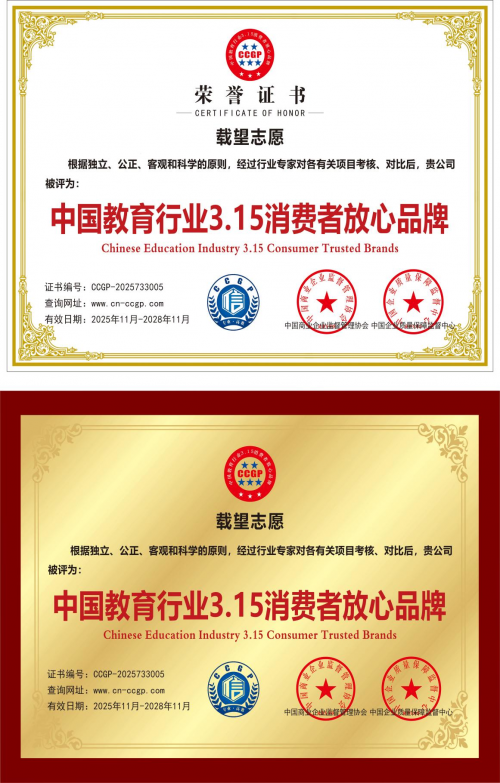 近日,载望志愿凭借在教育服务领域的卓越表现,经行业专家严格考核对比,成功斩获 “中国教育行业 3.15 消费者放心品牌” 荣誉。这一殊荣既是对其在教育科技领域深耕细作的高度肯定,更是对其坚守 “通过更有价值的内容、超预期的产品和极致的服务,让每个学生都能成就更好的自己” 使命的有力印证。
