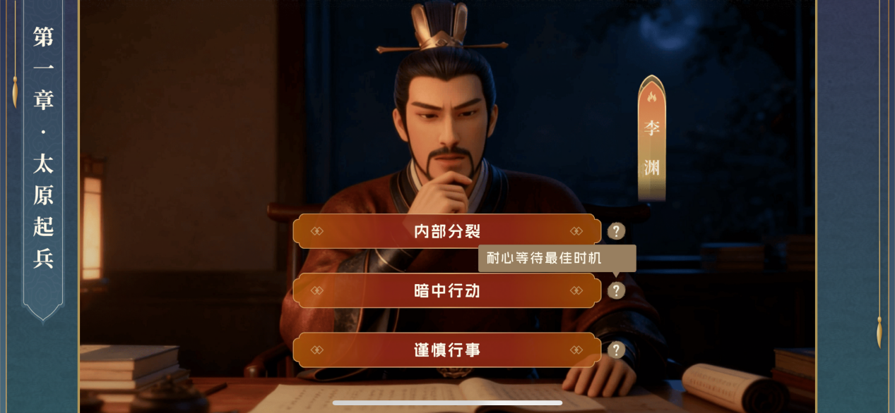 与传统的历史阅读产品不同,《少儿通鉴》并不以“讲故事”为核心功能,而是以“构建可参与的历史情境”为基本架构。产品将《资治通鉴》中高度复杂的历史事件拆解为一系列可操作的任务、冲突点和决策点,形成完整的“互动式推演系统”。