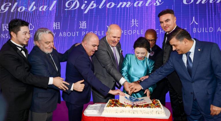 活动现场亮点纷呈,组委会主席王燕与荣誉主席、波黑驻华大使共同为轮值主席、牙买加驻华大使举行交接仪式,组委会成员代表携手切分纪念蛋糕,共贺盛会圆满。北马其顿前总理弗拉多・布茨科夫斯基等多国政要与中方代表亲切交流、合影留念,现场洋溢着文明交融、民心相通的浓厚氛围。