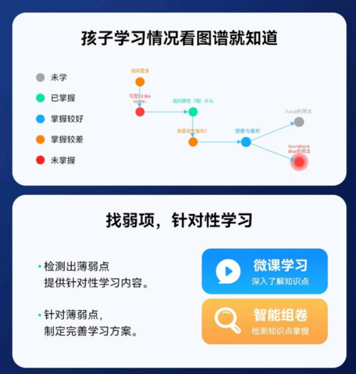 AI知识图谱,全面检测知识点,薄弱点一清二楚,根据薄弱点进行针对性学习的,找到孩子弱项,提高弱项,针对薄弱点,制定完善学习方案。