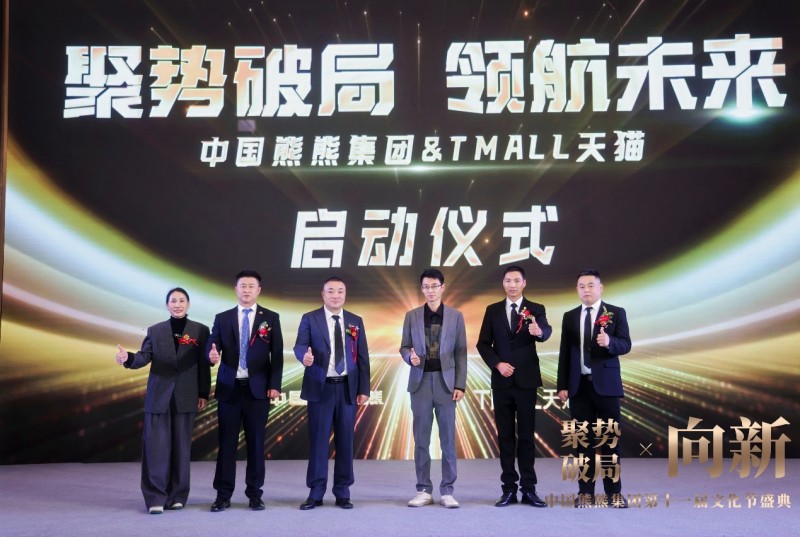 天猫渠道的战略签约仪式。在璀璨的灯光和激昂的音乐中,集团领导与阿里巴巴集团天猫代表共同按下启动手印。这不仅是商业合同的签署,更是在文化节这个特殊时刻,向全行业展示熊熊军团线上线下融合、全力冲刺新目标的决心。