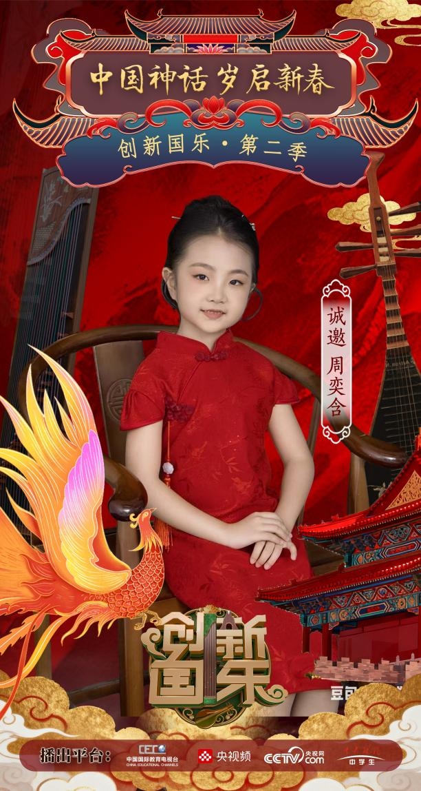 为持续推动中华优秀传统文化的创造性转化与创新性发展,打造具有时代气息的国乐精品,创新国乐第二季“中国神话 岁启新春”大型原创国乐盛典2026年2月8日在北京首钢园隆重启幕!在此,我们特别向学员周奕含发出正式演出邀请,期待她以更加成熟的技艺与表现力,与我们共同演绎华夏神话的壮丽诗篇。