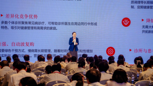 正康华药市场经理、聚峰理事会会长陈春燕老师以《传统诊所加速“进化”新路径》为主题,深刻剖析基层诊所“冰火两重天”的发展现状:一边是4.5亿慢病患者与7亿亚健康人群构筑的超10万亿级蓝海市场,政策红利持续加持;一边是患者流失、门诊量下滑、营收萎缩的经营困境,行业淘汰率居高不下。