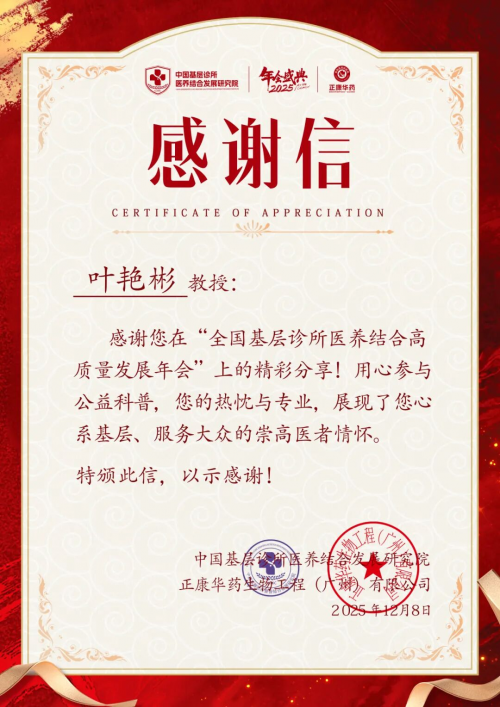 2025年12月7日-9日,由中国基层诊所医养结合发展研究院与正康华药联合主办,中国抗衰老促进会新质发展分会、广东省营养学会鼎力支持的“全国基层诊所医养结合高质量发展年会”,在广州增城盛大召开。