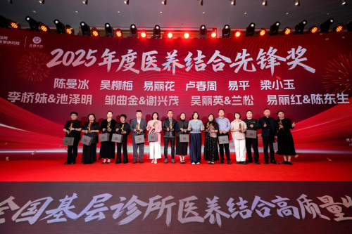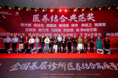 "2025年度医养结合典范奖",他们对推动基层诊所高质量发展贡献了很大的力量,让左手治疗方,右手营养方走进千家万户,树立了典范。他们是:刘光辉,陈远生、林国金、周佳丽、徐伟、林绥之、陈炳宣、范娟美、林万茂、马桂强、阳金娥、刘向荣与钟长生事业伙伴、吴奔与张乐恩伉俪、朱伟锋与张丽明伉俪、郑瑞洪与林春兰伉俪、王芳与年里东伉俪、林俊辰与金余伉俪,由中山大学公共卫生学院郭城教授颁奖。