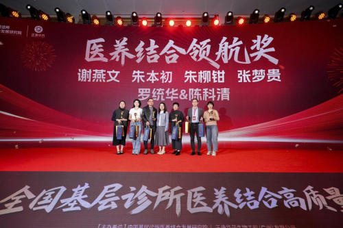 "2025年度医养结合领航奖",以远大格局和开拓精神,积极分享医养新思路,引领了行业的方向,以身作则影响很多身边同仁跟上医养结合发展之路!他们是:谢燕文、朱本初、朱柳钳、张梦贵、罗统华与陈科清伉俪,由暨南大学附属第一医院临床营养科主任医师、广东省营养学会妇幼营养专业委员会主任委员叶艳彬教授颁奖。