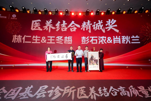 "2025年度医养结合精诚奖",以一方名医的仁心仁术,深耕基层,用医养结合解决方案守护万家健康,行业内赢得了极高的口碑与影响力,与正康华药使命,立足基层医疗,弘扬济世仁心,不谋而合。他们是:林仁生与王冬梅伉俪、彭石浓与肖秋兰伉俪,由中国抗衰老促进会新质发展分会会长、国家卫健委干部培训中心原副主任、国家卫健委党校原副校长李勇军先生颁奖。