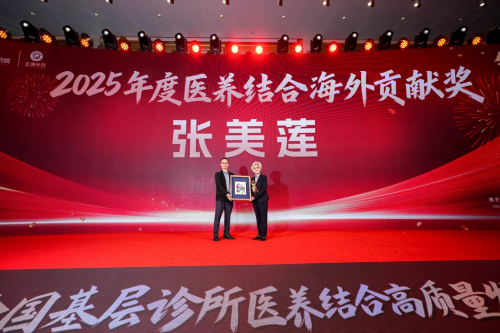 "2025年度医养结合海外贡献奖",获得者是张美莲教授,她如今八十多岁,却依然充满活力,坚持奔走于两国之间传承中医事业。张教授推动了国际市场的发展,于2025年7月26日在印尼首都雅加达华裔总会,我们携手印尼华裔总会与印尼中医协会举办了医养结合高质量发展会议,现场掌声雷动,取得圆满成功。将医养智慧带向世界,让医养结合的理念跨越山海,温暖更多生命!由广州中医药大学研究员、博士生导师,广东省中医院主任医师林传权教授颁奖。