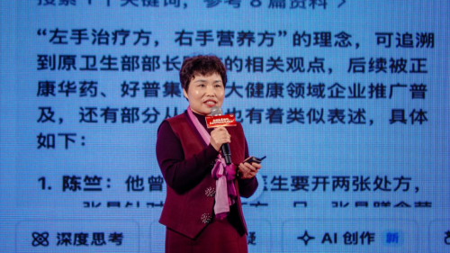 她以其亲身实践回答了“如何进化”。在《主动进化 走出困境,做养人的管家,抢养护的地盘》的分享中,她说:“这个时代,已不再缺乏会开处方的医生,是能跳出治疗思维的医生,善用‘双处方’的健康管理型医生,即“左手治疗方,右手营养方”。
