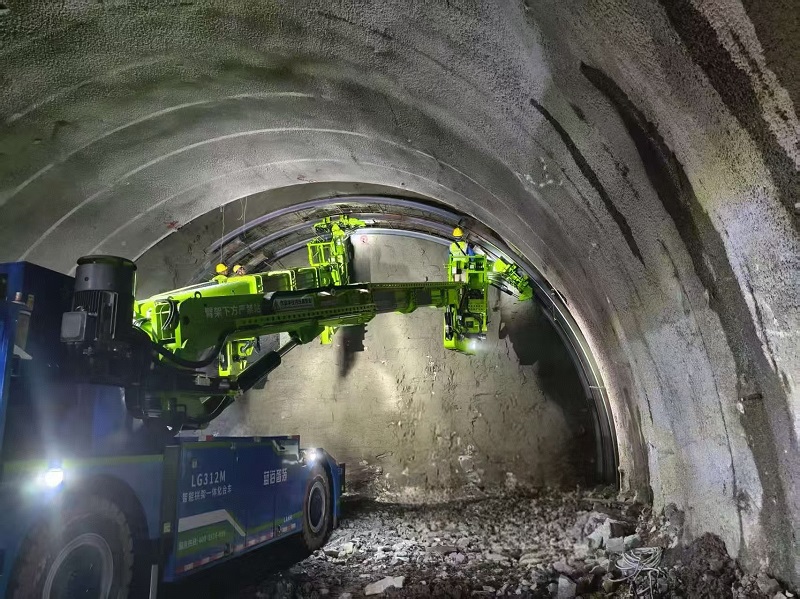 建设过程中,中交路建项目团队引进智能拱架安装台车,构建“精准定位+高效支护”的施工新模式,彻底破解传统工艺痛点,实现三榀拱架安装时间从1小时40分钟缩短至50分钟,且较人工立架8人减少至4人,降低劳动强度,安全系数大幅提升,实现“安全性能优、支护效率高”的良性循环,工序衔接时间缩短50%,月进尺提升30%。
