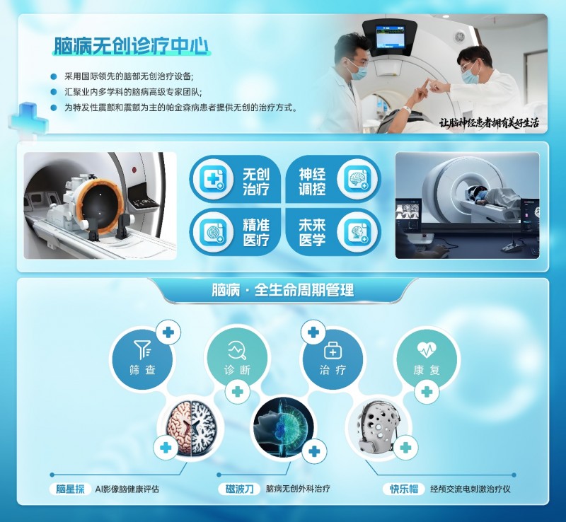 磁共振引导聚焦超声(MRgFUS)技术,即脑部“磁波刀”,通过融合磁共振成像(MRI)与高能聚焦超声,以超声聚焦实现深部脑组织的毫米级精准调控,无需开颅与麻醉,无植入物,治疗后恢复快,作为新型的无创神经调控技术,其在帕金森病、特发性震颤等运动障碍疾病治疗中优势显著。